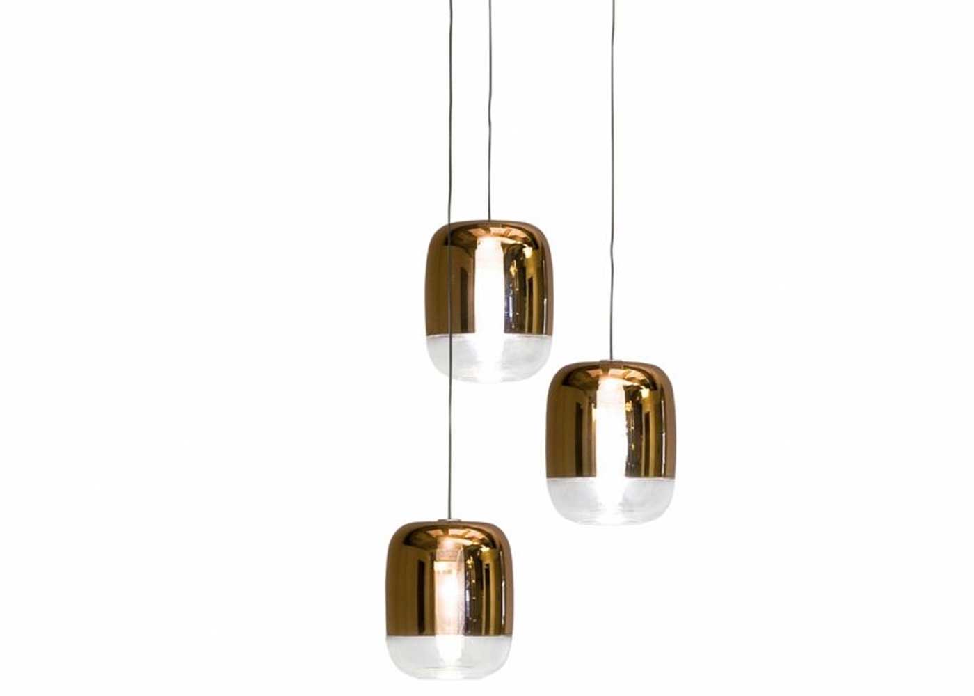 Inspired by ancient Chinese bells, the elaborate Gong Mini 5R Suspension lamp comprises five delicate lamps each hung at different heights. The lamps are fashioned from high-end glass and treated with a copper colour. With an overall size of 300cm, the individual lamps each measure 13.5cm in height and 16.5cm in diameter. This compact size allows it to be used in smaller spaces. Striking and practical, the Gong Mini 5R Suspension lamp offers wonderful task and ambient illumination to all kinds of spaces including dining rooms, modern kitchens, living rooms, hallways, and bedrooms.