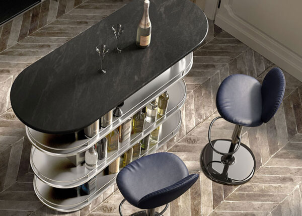 A toast to the Italian lifestyle, to its refined elegance. The Skyline Bar Desk is a simple yet exquisite piece of furniture that has evolved from our Natuzzi Italia lifestyle concept and our idea of home living. It abounds in shelves and storage compartments for every kind of cocktail and drink preparation. Useful drawers for tablecloths and napkins.
