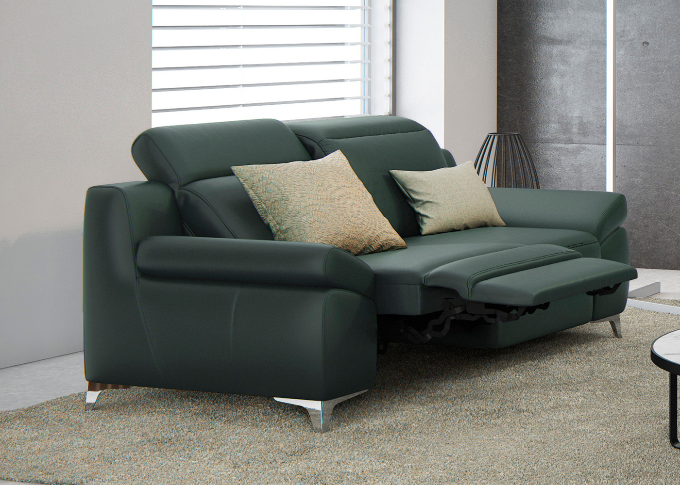 Part of the 20cm concept Levana is oozes style and luxury. A made to measure service with a choice of sizes in steps of 20cm. In addition the folding back cushion gives you the option of a high or low back and a choice of two seat depths and two arms, compact and basic. Choice of the size, by steps of 20cm. Larger sofas or corners (in steps of 20cm), or other combinations than the ones suggested are also possible, on request. Adjustable headrest, noiseless slide fitting. 2 seat depths : S or L (3cm difference). 2 armrests available : C = Compact or B = Basic. OPTIONS: Zero-wall relax option (electric) – wall hugger, no clearance needed. Also available for the Longchair: +/- 20cm. Vario (electric) : +/- 25 cm. Vario: not available for T (Terminal) et L (Longchair). Adjacent seats with Vario option can operate either individually (option charged for each seat) or grouped (option charged only once per seat group). Max. 2 seats grouped. Warm up (heating for seat and lumbar area). Zen (electrically adjustable headrest). Zen: electrically adjustable headrests for the corner element automatically for both headrests and charged twice Battery (one battery pack for all electric options). Choice of the location of charging connector. The battery is not available for Warm up function (seat heating) and Aladin (parametrisation/memorization). The selected element for the location of the charging connector for battery must include at least one electrical option Home Cinema with storage space and USB port. Shelf of the storage space available in 3 colours: white, silver and black. Audiofix (universal speaker bracket and trunking system for the home cinema). Audiofi x: in colours white, silver or black, identical to the shelf of the storage space Home Cinema. Aladin (enables the memorization and retrieval of the favourite position). Aladin: when ordering a sofa / chair or a corner group with at least 3 electrical function, the Aladin Option is available free of charge A USB charging cable is included with each seat that is ordered with an electrical option (between seat and back). Operation of the electrical function by EasyMove buttons, elegant metal switches. Possibility to memorize the favourite position (one per seat). COMFORT Choice of 2 foams: Fifty5 or Boxspring+ (2 layers of pocket springs + Fifty5). COVERS Model available in two tone colour, it is not possible to combine leather and fabric. Leather version with quilted frame. For the leather version, the seats are laminated with a special fleece in order to limit elasticity of the leather and reduce fold formation.