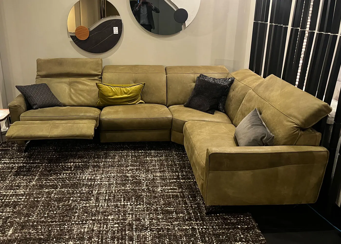 ROM Tofane Fully Reclining Corner Sofa in Togo Olive Leather 280cm x 220cm