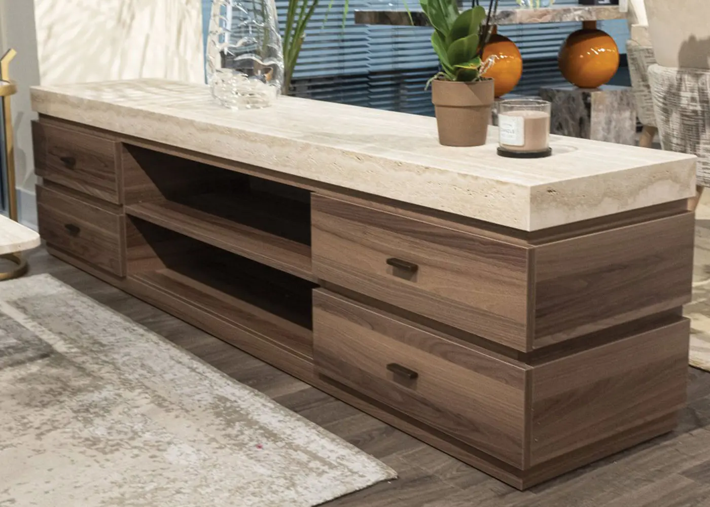 The Fuji Collection includes a complete series of furnishing products for the dining room living room and bedroom. The dominant motif consists of deep horizontal grooves crafted on the wooden bases for tables.Contemporary elegance and purity of form are the inspiring principles of the Fuji Collection.